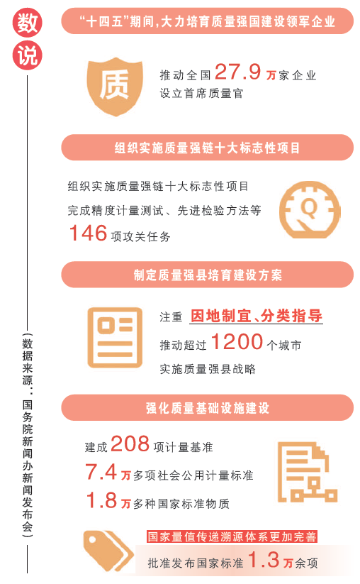 日前,国家市场监督管理总局召开专题新闻发布会,通报了《质量强国建设纲要》2025年阶段性目标如期实现。