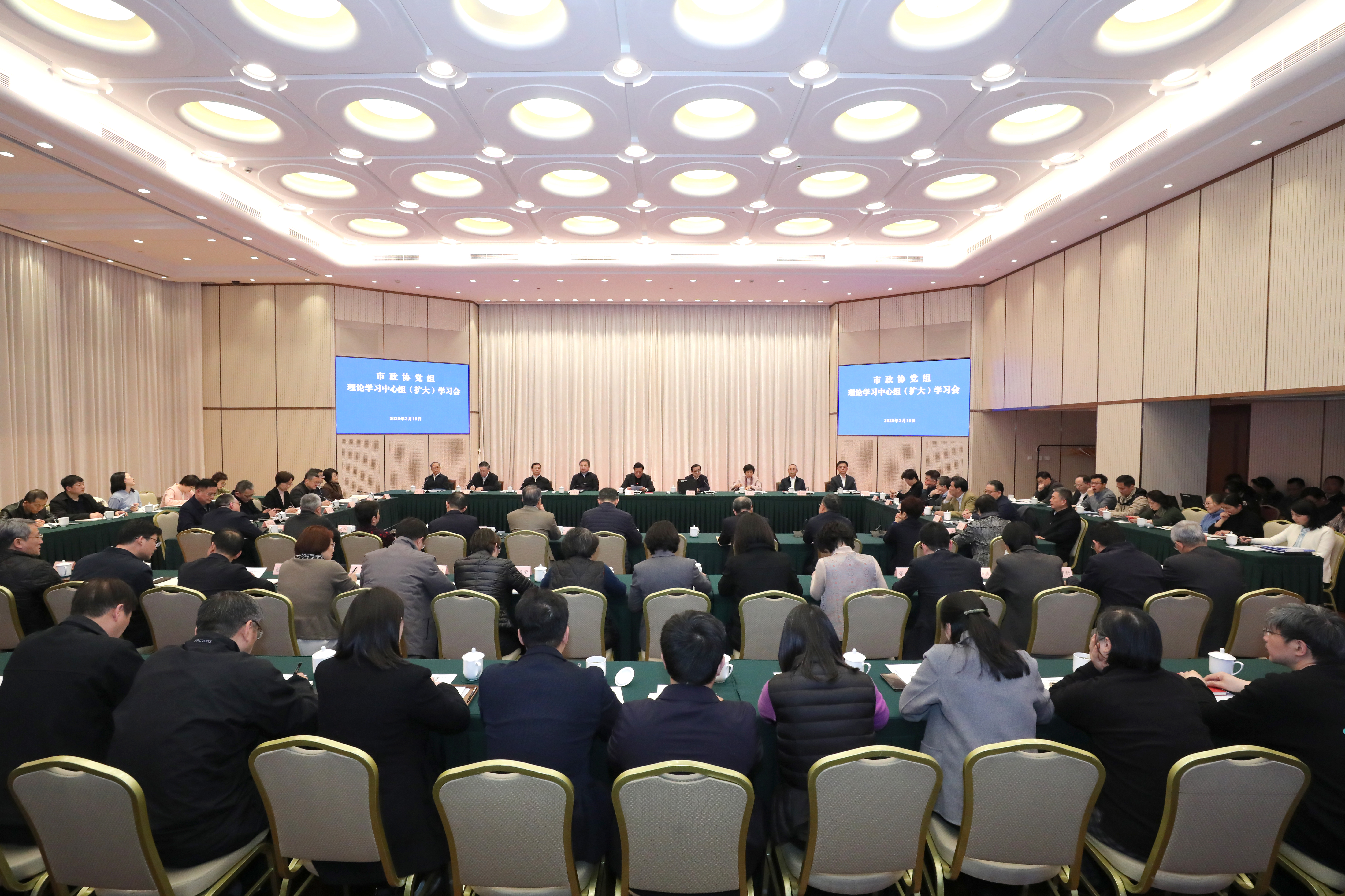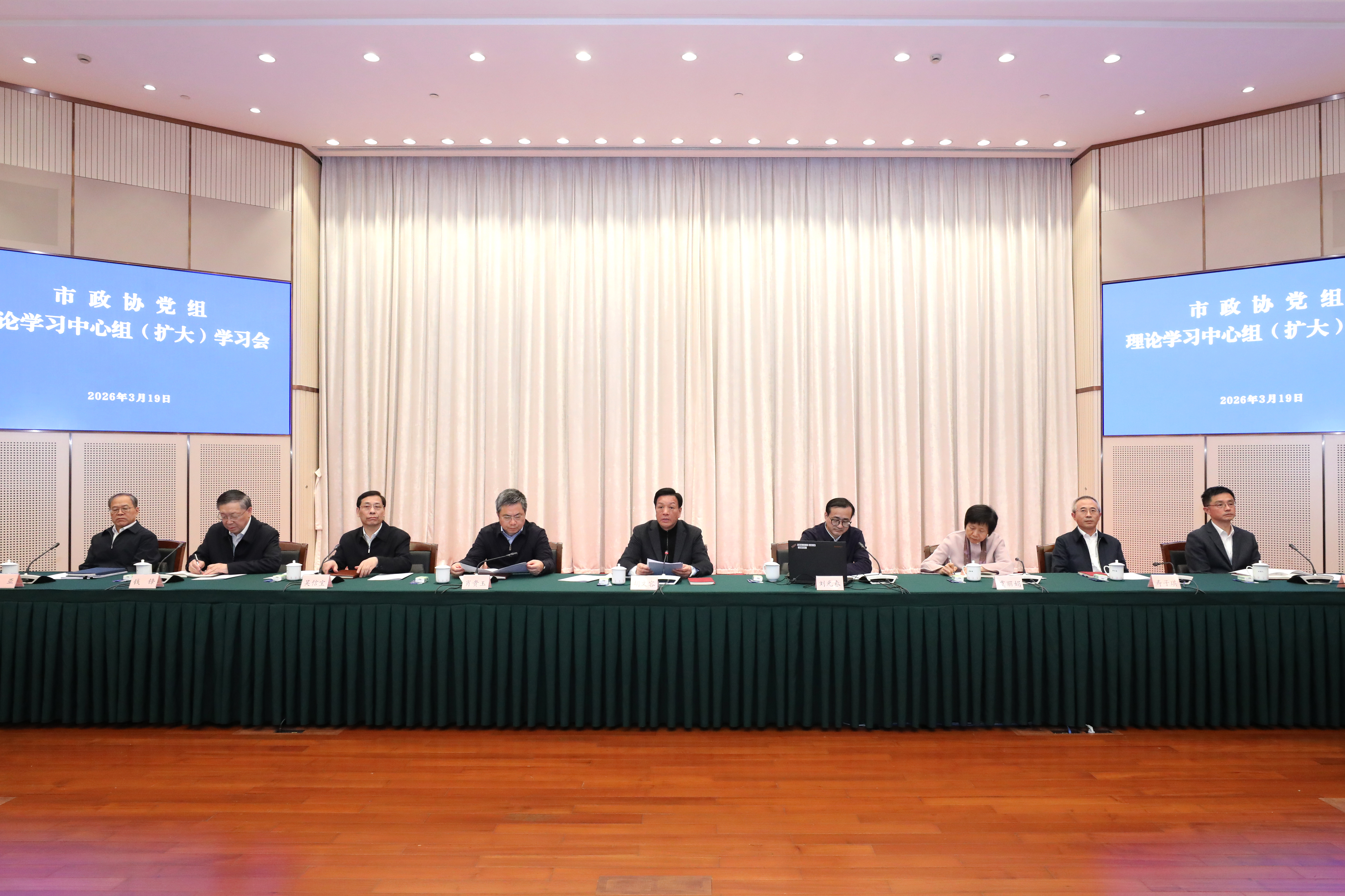 3月19日,市政协党组理论学习中心组召开学习会,围绕“树立和践行正确政绩观,推动‘十五五’开好局、起好步”开展专题学习。市政协主席、党组书记胡文容主持并讲话,强调要学深悟透习近平总书记关于树立和践行正确政绩观的重要论述,贯彻落实中央和市委关于“十五五”发展的重要部署,强化建言资政和凝聚共识双向发力,更好助推上海“十五五”各项目标任务落地落实。