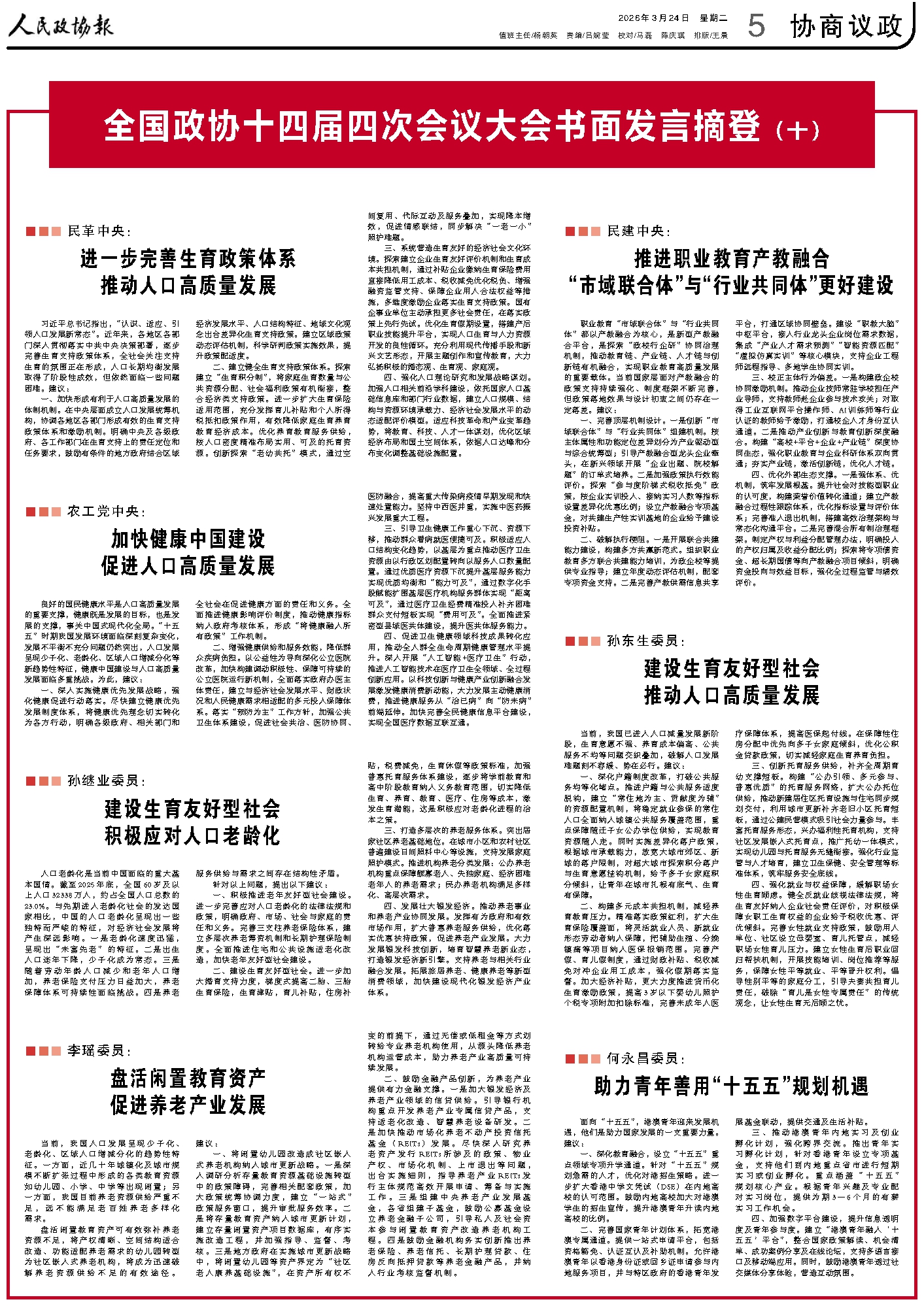 全国政协十四届四次会议大会书面发言摘登(十)