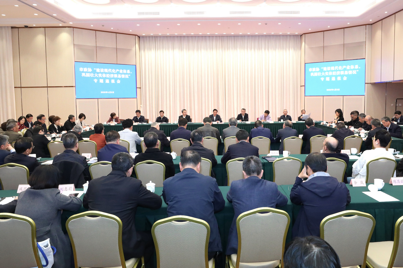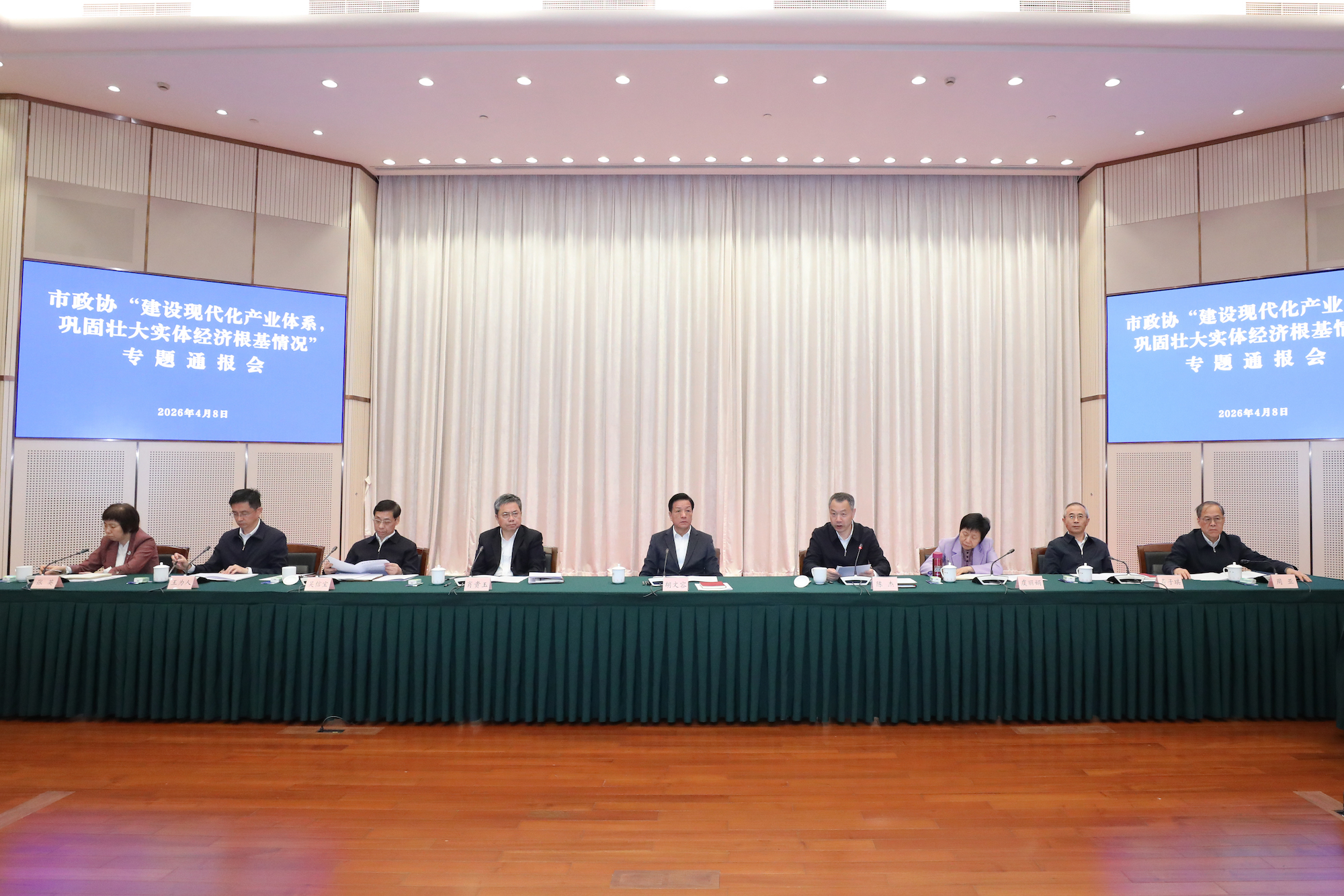 4月8日,市政协召开“建设现代化产业体系,巩固壮大实体经济根基情况”专题通报会。市政协主席胡文容出席并讲话,市委常委、副市长陈杰通报有关情况。