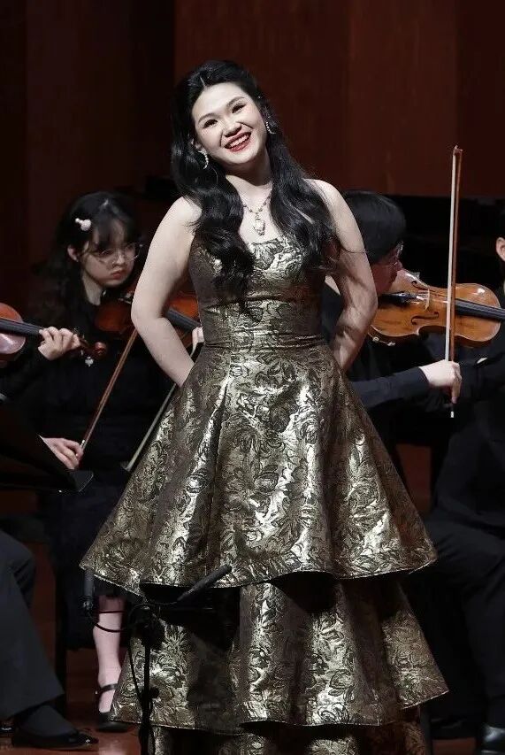 在获奖学生的舞台呈现上,蒙古族姑娘乌列热率先登场。这位在第四届中国艺术歌曲国际声乐比赛中摘得桂冠的青年女高音,以《红豆词》《我住长江头》《可爱的一朵玫瑰花》三曲依次呈现出中国古典诗词与新疆民间音调的不同风貌。从思恋情人的痴情愁怨,到哈萨克族的率性洒脱,乌列热以温润与奔放兼具的嗓音显示出中国风土人文中的不同情愫。